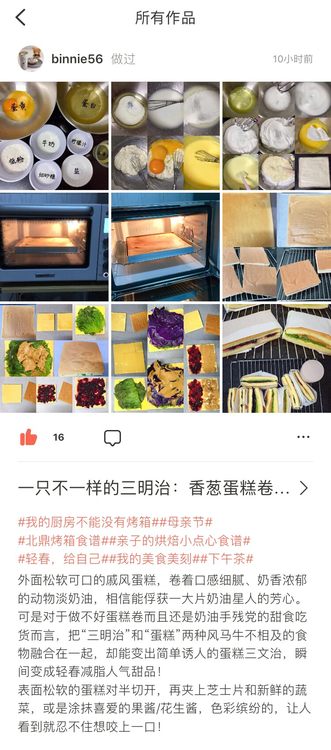 #我的厨房不能没有烤箱##轻春,给自己##母亲节##亲子烘焙的小点心食谱##蛋糕三明治# 外面松软可口的戚风蛋糕,卷着口感细腻、奶香浓郁的动物淡奶油,相信能俘获一大片奶油星人的芳心。 可是对于做不好蛋糕卷而且还是奶油手残党的甜食吃货而言,把“三明治”和“蛋糕”两种风马牛不相及的食物融合在一起,却能变出简单诱人的蛋糕三明治,瞬间变成轻春减脂人气甜品! @北鼎BUYDEEM 表面松软的蛋糕对半切开,再夹上芝士片和新鲜的蔬菜,或是涂抹喜爱的果酱/花生酱,色彩缤纷的,让人看到就忍不住想咬上一口