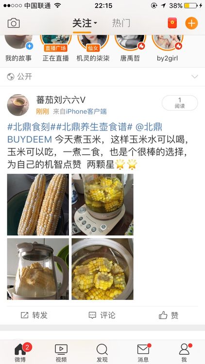 #北鼎食刻##北鼎养生壶食谱# @北鼎BUYDEEM 今天煮玉米,这样玉米水可以喝,玉米可以吃,一煮二食,也是个很棒的选择,为自己的机智点赞 两颗星