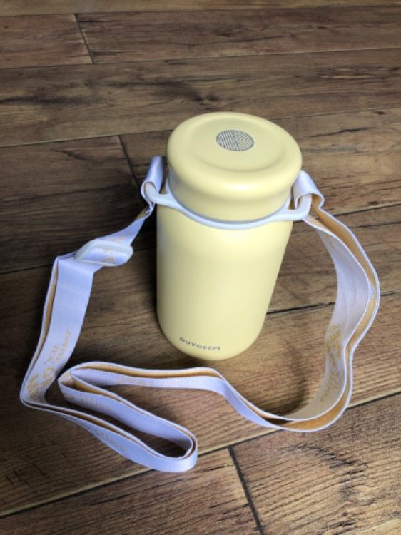 美而不骄的小黄。迷你的身材,磨砂的质感,有种憨厚的雅致感。无论置身于哪个场景之中都美到无缝贴合。 杯身两侧的凹形条纹握在手中刚刚好,硅胶拉环非常就手,背带解放了带娃的双手。实用性百分之两百的高[赞]。 保温效果也很好,前天17点装的热水,时隔24小时入口尚温,我这个拥有20个日系保温杯的狂人都无法挑剔[赞]@北鼎BUYDEEM