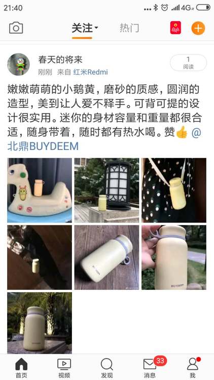 嫩嫩萌萌的小鹅黄,磨砂的质感,圆润的造型,美到让人爱不释手。可背可提的设计很实用。迷你的身材容量和重量都很合适,随身带着,随时都有热水喝。赞