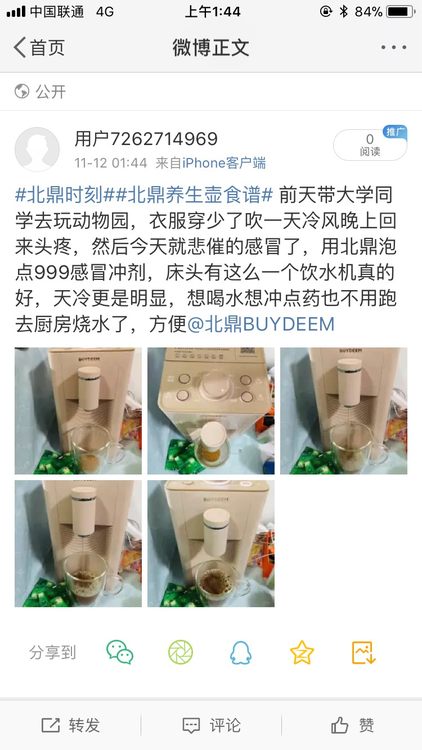 #北鼎时刻##北鼎养生壶食谱#前天带大学同学去玩动物园,衣服穿少了吹一天冷风晚上回来头疼,然后今天就悲催的感冒了,用北鼎泡点999感冒冲剂,床头有这么一个饮水机真的好,天冷更是明显,想喝水想冲点药也不用跑去厨房烧水了,方便@北鼎BUYDEEM