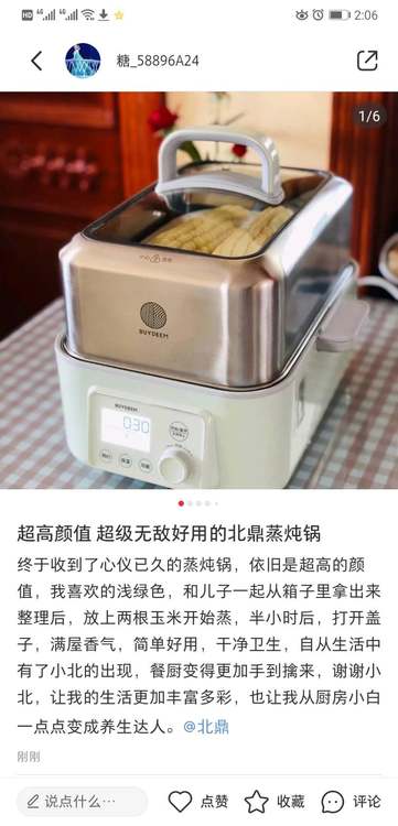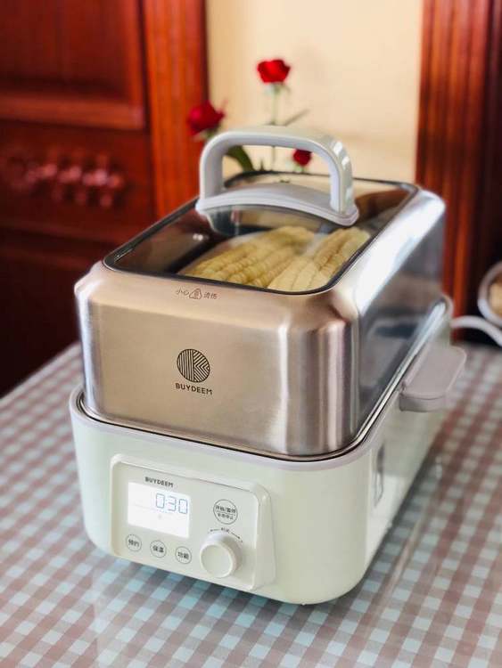 终于收到了,很爱很爱,颜值高,并且方便好用,儿子都可以顺利操作蒸了两根玉米,期待我能做出更多更美的菜品。