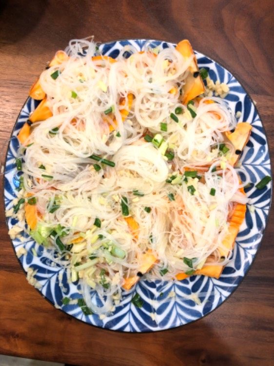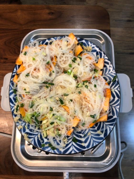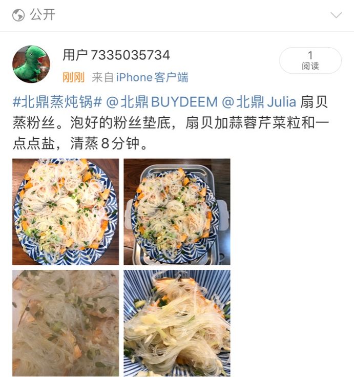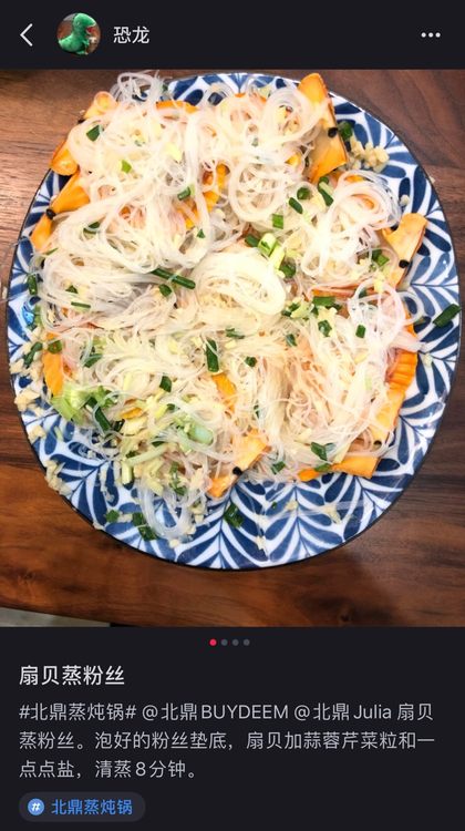 #北鼎蒸炖锅# @北鼎BUYDEEM @北鼎Julia 扇贝蒸粉丝。泡好的粉丝垫底,扇贝加蒜蓉芹菜粒和一点点盐,清蒸8分钟。