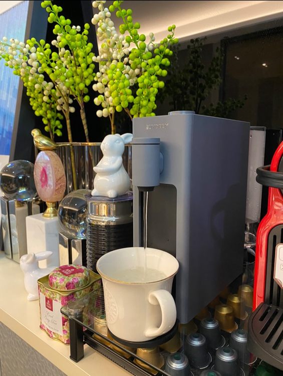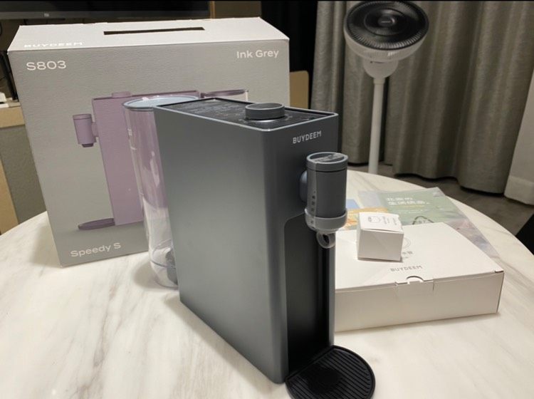 #找个理由多喝水# @北鼎BUYDEEM @北鼎Julia 懒人饮水自由 小身材 更有才 神奇的隐形力! 我的Speedy S 太帅气了!!!收到迫不及待的开箱,很惊喜!北鼎家的颜值依旧那么高!!这种颜色跟家里风格太配了!简直酷帅酷帅有没有!!果断马上清洗开喝!放在我的小红胶囊咖啡机旁边,犹如一对小情侣有没有,哈哈哈~以后就有伴啦,喝水也不用再去厨房按了!!这水机还有三种取水方式哦,除了800ml的水箱,可以换1.5L及以下的瓶装水,也可以用导水管的大瓶装水,任君选择!足够人性化操作!还可以三秒出水!八种温度任你选择!爱了爱了