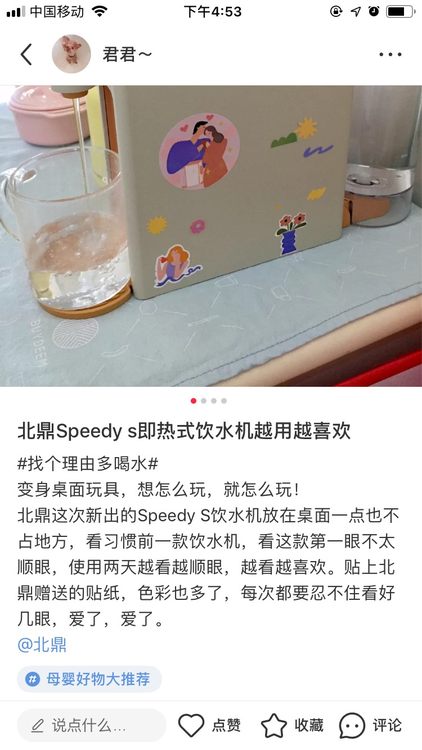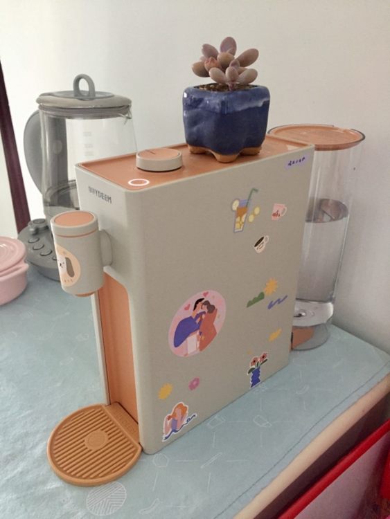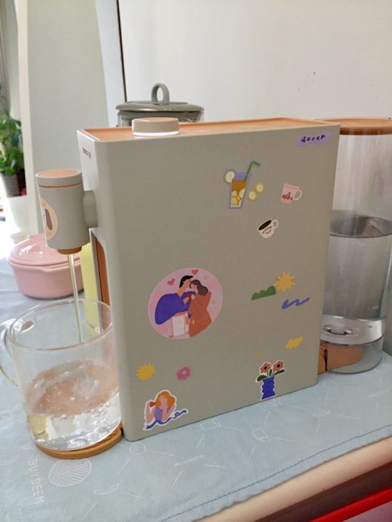 #找个理由多喝水# 变身桌面玩具,想怎么玩,就怎么玩! 北鼎这次新出的Speedy S饮水机放在桌面一点也不占地方,看习惯前一款饮水机,看这款第一眼不太顺眼,使用两天越看越顺眼,越看越喜欢。贴上北鼎赠送的贴纸,色彩也多了,每次都要忍不住看好几眼,爱了,爱了。 @北鼎BUYDEEM