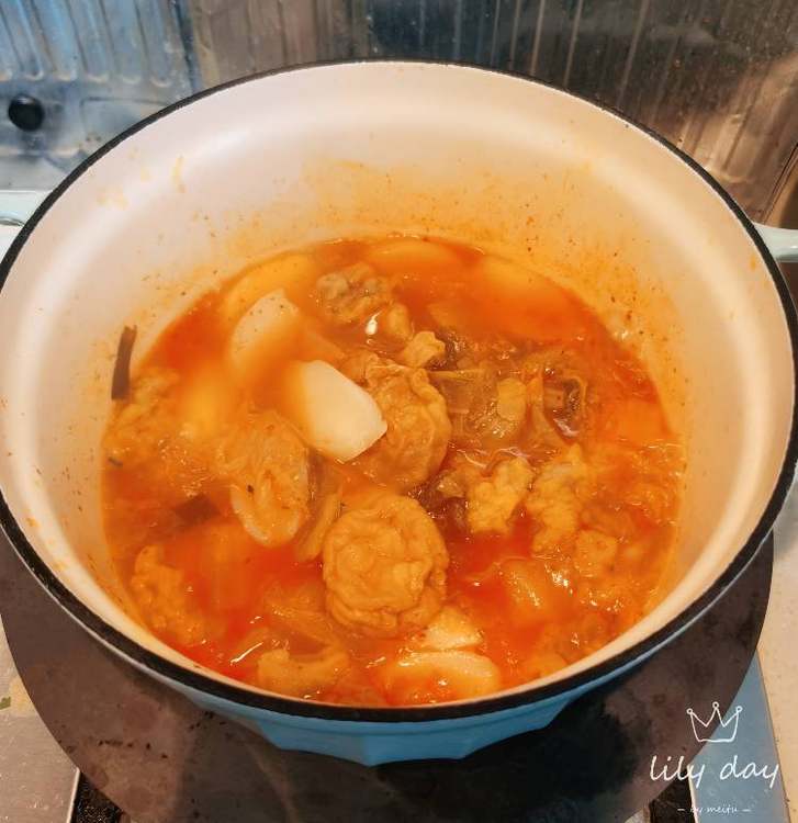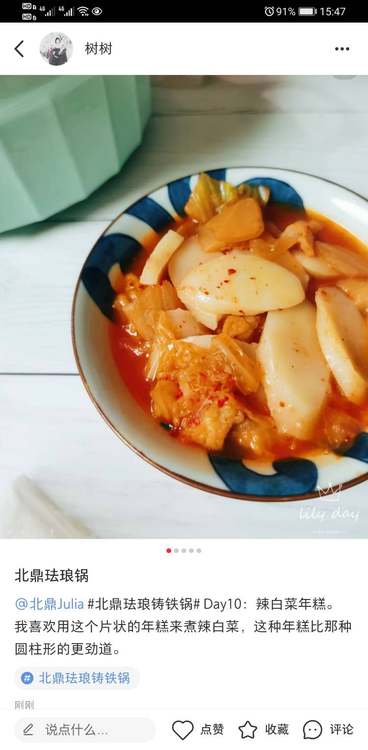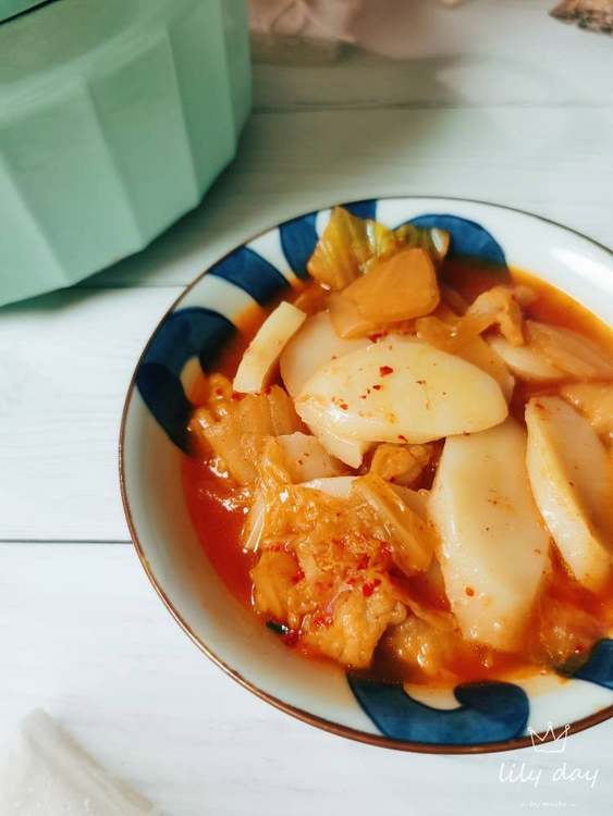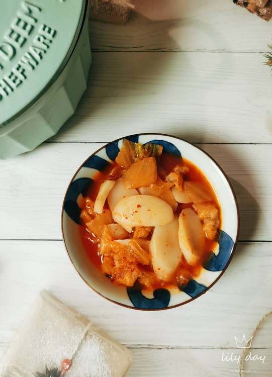 Day10:辣白菜年糕。 我喜欢用这个片状的年糕来煮辣白菜,这种年糕比那种圆柱形的更劲道。