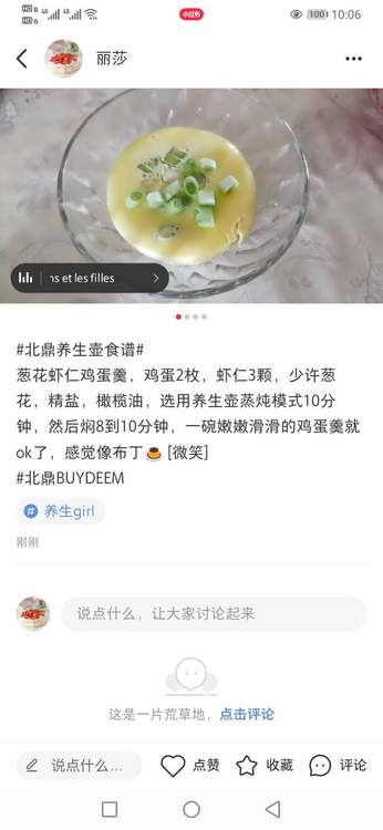 #北鼎养生壶食谱# 葱花虾仁鸡蛋羹,鸡蛋2枚,虾仁3颗,少许葱花,精盐,橄榄油,选用养生壶蒸炖模式10分钟,然后焖8到10分钟,一碗嫩嫩滑滑的鸡蛋羹就ok了,感觉像布丁