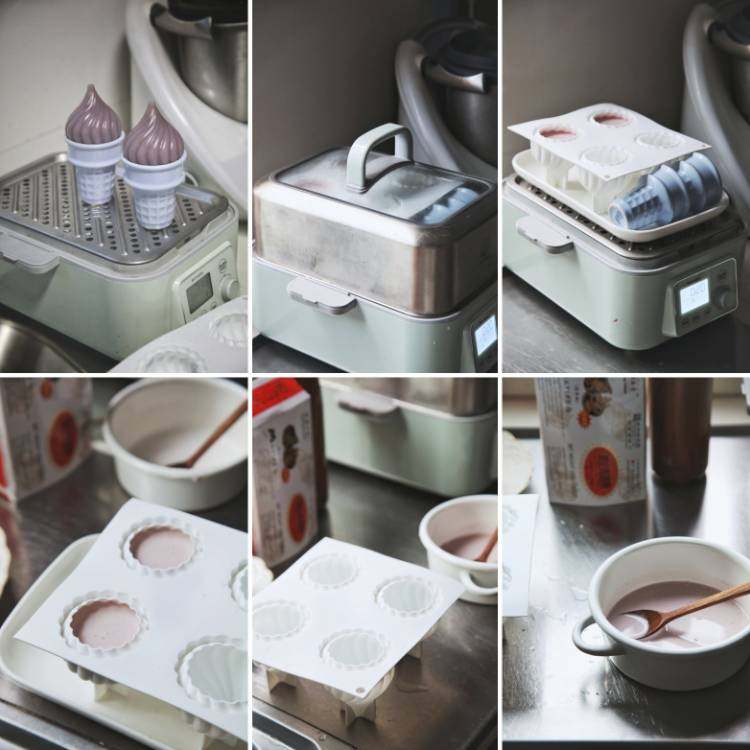 #北鼎蒸炖锅# 紫山药马蹄糕 之前做的经典颤抖假冰激凌被讨论了一下绝对再玩一下,重买了模具,用马蹄糕的方式做出来,紫山药的颜色不如红心火龙果的少女,另一种感受,用蒸炖锅蒸出来顺带餐具一起高温消毒,方便快手[哇]