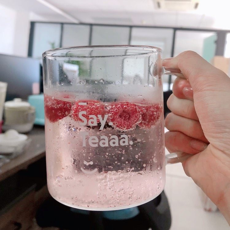 新买的北鼎saytea杯 刚入手赶紧自制一杯覆盆子苏打水 粉粉嫩嫩的颜色 夏日需要多补水