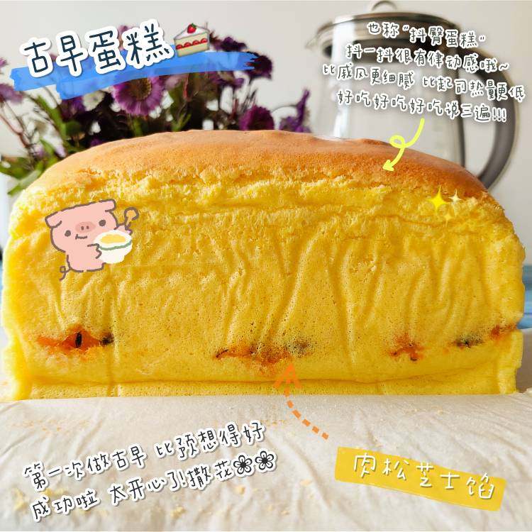 #我的厨房不能没有烤箱# 看到卷卷的视频手痒痒,刚好上个月腌的咸蛋黄流油了,咸蛋黄肉松抖臀蛋糕安排!过程很慌乱,好在最后抖臀成功,duangᝰ﹏duangᝰ﹏