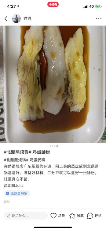 #北鼎蒸炖锅# 鸡蛋肠粉 突然很想念广东肠粉的味道,网上买的蒸盘放到北鼎蒸锅刚刚好,准备好材料,二分钟就可以蒸好一张肠粉,味道真心不错。 @北鼎BUYDEEM @北鼎Julia