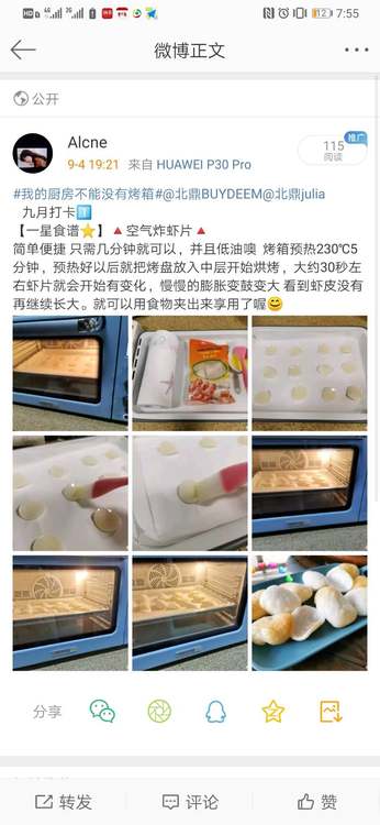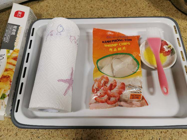 九月打卡1⃣ 【一星食谱⭐️】空气炸虾片 简单便捷 只需几分钟就可以,并且低油噢 烤箱预热230℃5分钟,预热好以后就把烤盘放入中层开始烘烤,大约30秒左右虾片就会开始有变化,慢慢的膨胀变鼓变大 看到虾皮没有再继续长大。就可以用食物夹夹出来享用了喔