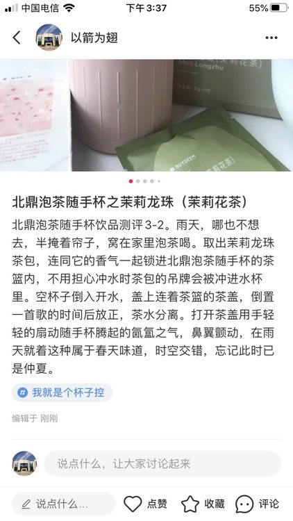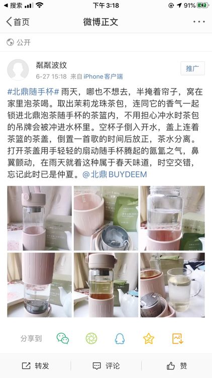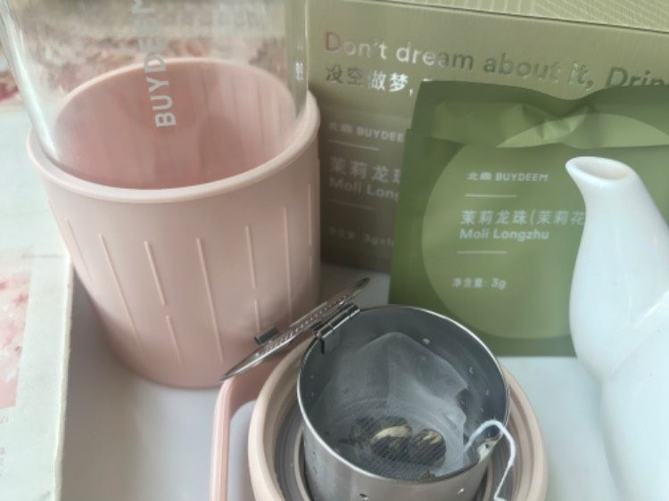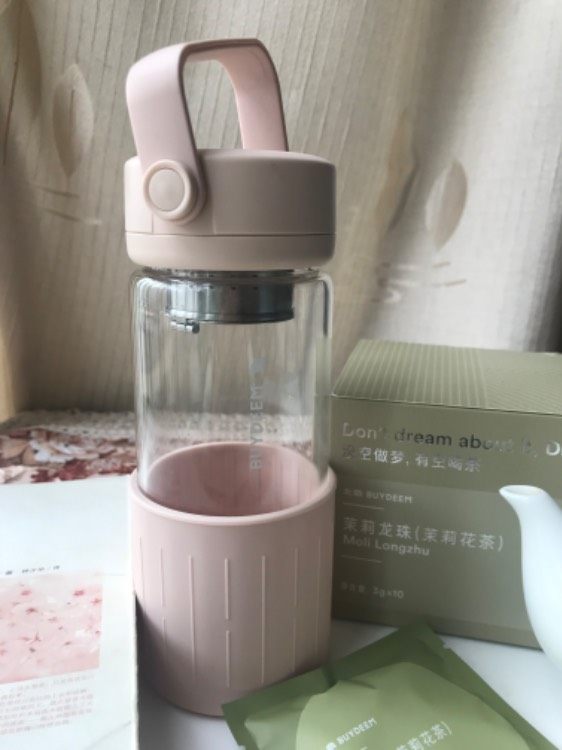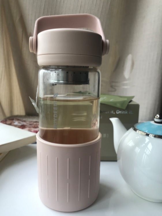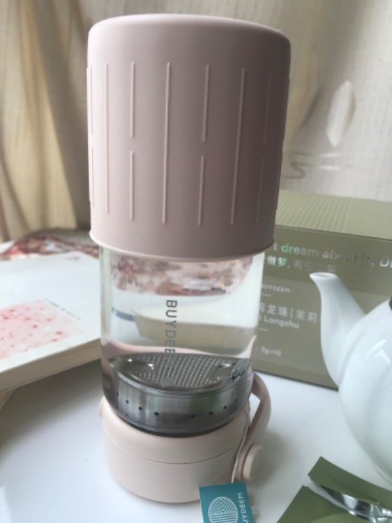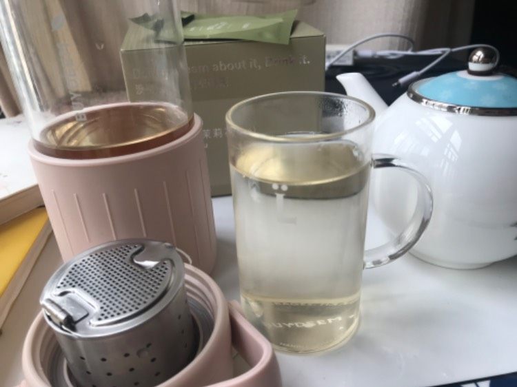 北鼎泡茶随手杯饮品测评3-2。雨天,哪也不想去,半掩着帘子,窝在家里泡茶喝。取出茉莉龙珠茶包,连同它的香气一起锁进随手杯的茶篮内,不用担心冲水时茶包的吊牌会被冲进水杯里。空杯子倒入开水,盖上连着茶篮的茶盖,倒置一首歌的时间后放正,茶水分离。打开茶盖用手轻轻的扇动随手杯腾起的氤氲之气,鼻翼颤动,在雨天就着这种属于春天味道,时空交错,忘记此时已是仲夏。