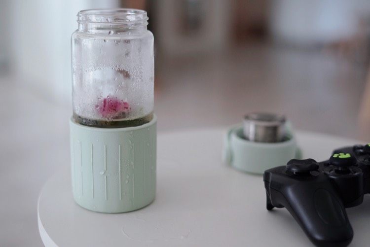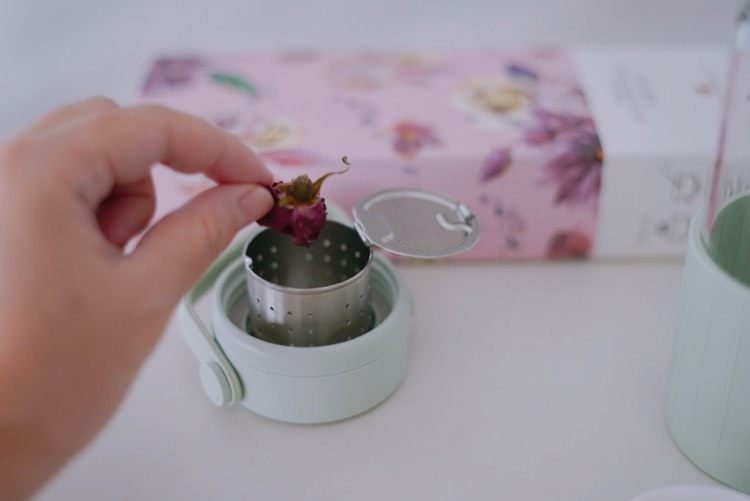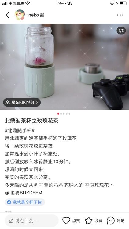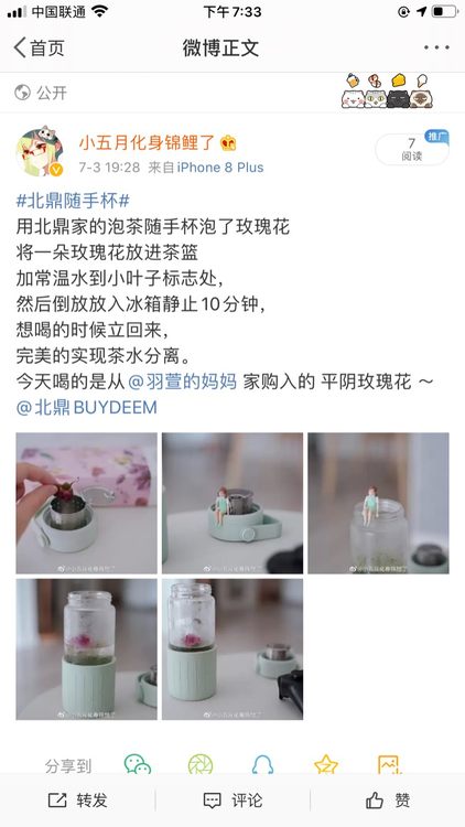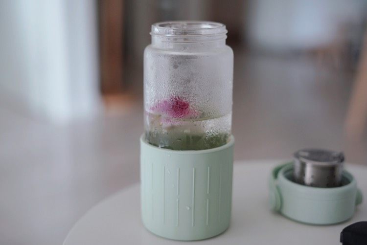 #北鼎随手杯# 用北鼎家的泡茶随手杯泡了玫瑰花 将一朵玫瑰花放进茶篮 加常温水到小叶子标志处, 然后倒放放入冰箱静止10分钟, 想喝的时候立回来, 完美的实现茶水分离。 今天喝的是从@羽萱的妈妈 家购入的 平阴玫瑰花 ~ @北鼎BUYDEEM