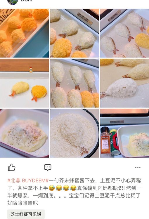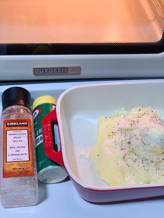 『北鼎 BUYDEEM烤箱』一勺芥末蜂蜜酱下去,土豆泥不小心弄稀了。各种拿不上手