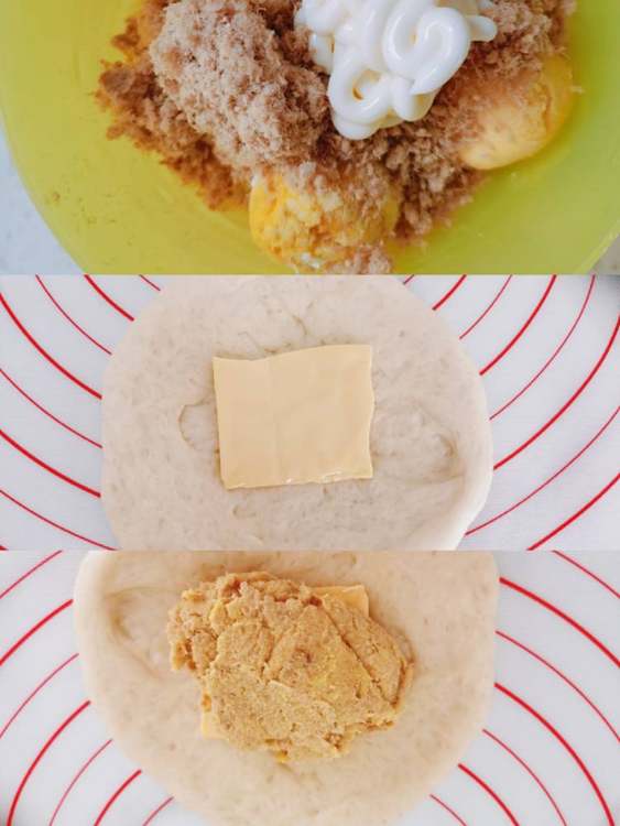 芝士咸蛋肉松餐包 #北鼎Chef系列# 感觉买了北鼎最值钱的是售后服务,群里还经常有烘焙课,这次教做黄米餐包,老师讲的仔细,好多小经验小技巧都分享出来了,根据老师教的,我做了咸蛋肉松餐包。@北鼎BUYDEEM @北鼎Julia 这就是我的幸福时刻