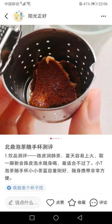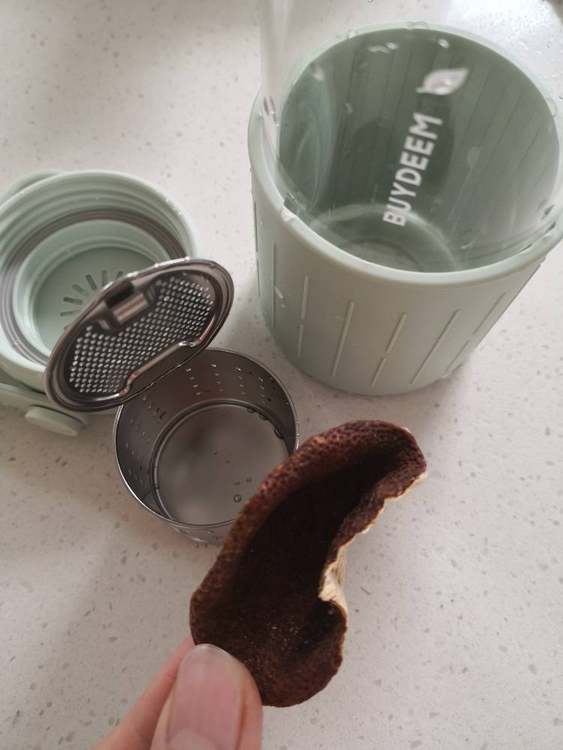 1.饮品测评——陈皮润肺茶,夏天容易上火,取一瓣新会陈皮泡水随身喝,最适合不过了。小T泡茶随手杯小小茶篮容量刚好,随身携带非常方便。