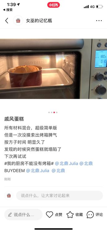 戚风蛋糕 所有材料混合,超级简单版 但是一次没摸索出烤箱脾气 按方子时间 明显久了 发现的时候突然蛋糕就塌陷了 下次再试试 #我的厨房不能没有烤箱# @北鼎Julia @北鼎BUYDEEM