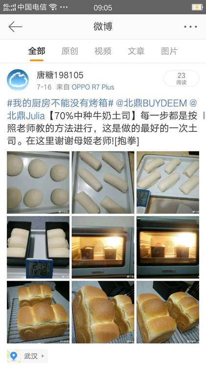 #我的厨房不能没有烤箱# @北鼎BUYDEEM @北鼎Julia【70%中种牛奶土司】每一个步骤都是严格按照老师教的方法进行操作,连做两次牛奶中种吐司都非常成功。(第二次做到凌晨1:00)这次能做出这么漂亮吐司,得感谢北鼎团队和母姬老师的辛勤付出![抱拳]