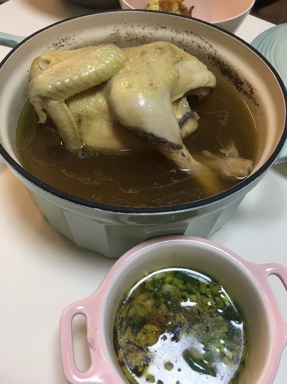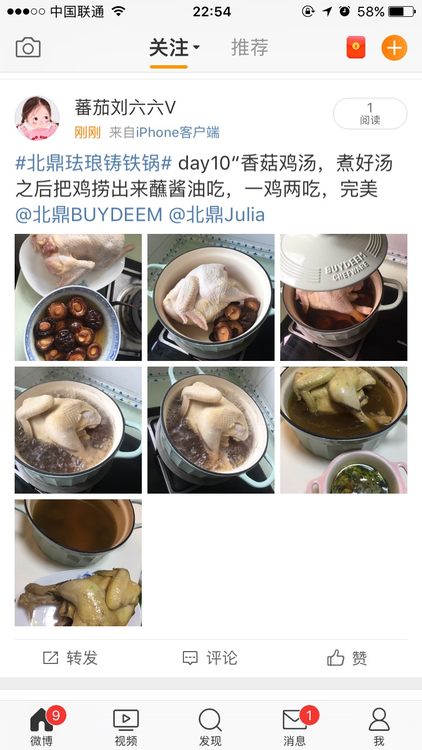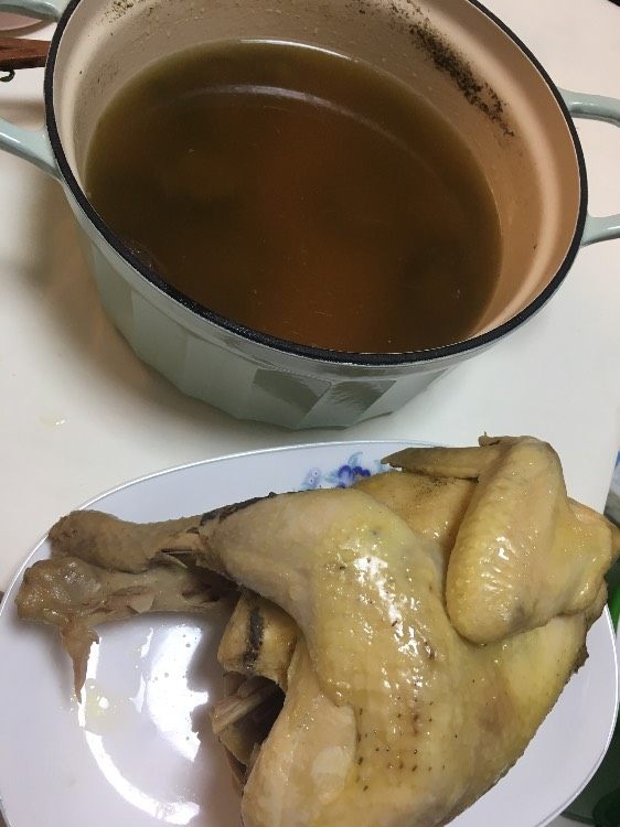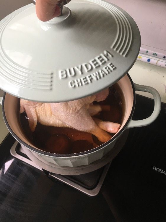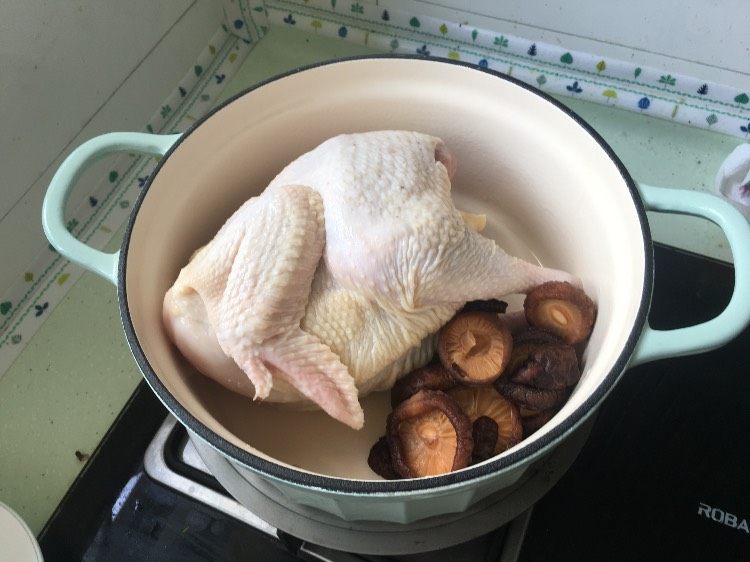 #北鼎珐琅铸铁锅# day10“香菇鸡汤,煮好汤之后把鸡捞出来蘸酱油吃,一鸡两吃,完美 @北鼎BUYDEEM @北鼎Julia
