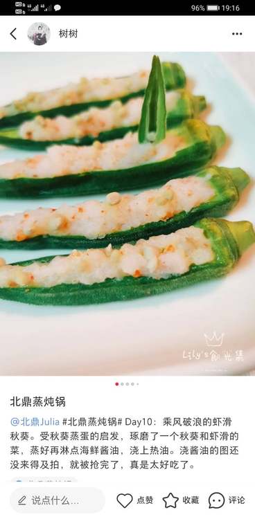 Day10:乘风破浪的虾滑秋葵。受秋葵蒸蛋的启发,琢磨了一个秋葵和虾滑的菜,蒸好再淋点海鲜酱油,浇上热油。浇酱油的图还没来得及拍,就被抢完了,真是太好吃了。
