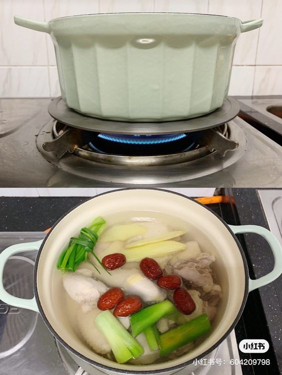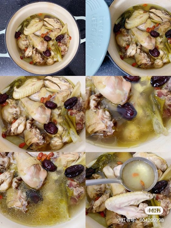 #北鼎珐琅铸铁锅##北鼎珐琅铸铁锅美食日记# 7月北鼎珐琅铸铁锅美食日记7——炖鸡汤 @北鼎BUYDEEM @北鼎Julia #北鼎珐琅铸铁锅#炖鸡汤是养生汤水的首选!凉水入鸡肉,与姜葱料酒煮沸;焯水洗净鸡肉放#北鼎珐琅铸铁锅#,加姜葱红枣热开水煮沸转小火炖1.5h,最后20min放枸杞和盐。特别简单,没有过多调料和食材,轻松搞定。不仅可以喝汤还能吃肉,一碗下去滋补又暖胃