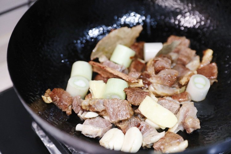 2、牛腩尽量选肥瘦相间的,炒制和炖煮过程中会更香