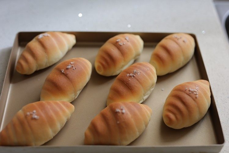 2、没有有盐黄油可以用无盐黄油加点盐代替搅拌均匀来代替,或者不裹黄油当小餐包也可以