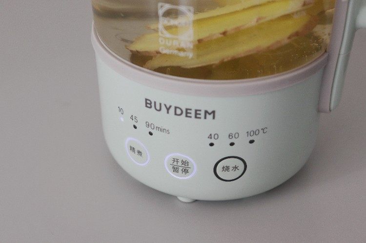 加水至500ml水位线,选择“精煮·10mins”模式,按下“开始”键。最后2mins时加入黄砂糖。