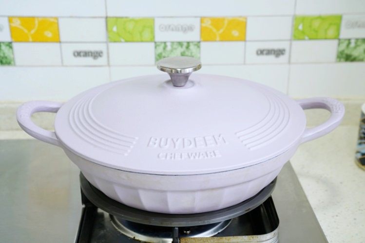 可以像这样子上盖上盖子,这样子更容易煸炒至想要的程度。