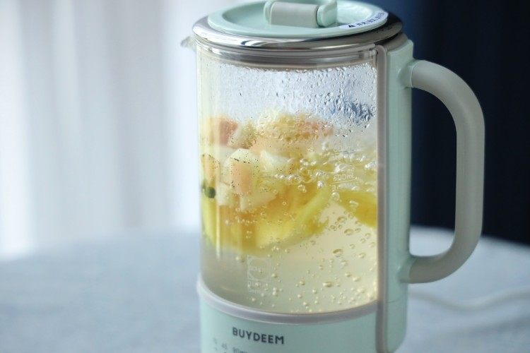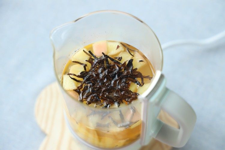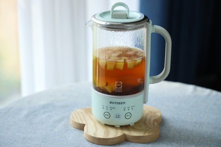 这次用了煮的方法,添加了苹果,橙子这类香气十足的水果,味道变得更加浓郁,好喝。额外还添加了一小段香草荚,能去除水果的酸涩味,提升果子的甜味,使茶叶和果香融合的更好。