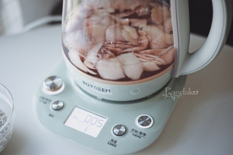 煮西米:启动花草茶功能,时间调到15分钟;程序结束不要开盖,继续焖到没有白芯,大概需要10-15分钟。