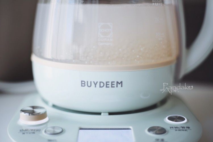 养生壶内加入500ml水(最低水位线),开水果茶功能(默认10分钟),将果皮放进去煮出粉红色。