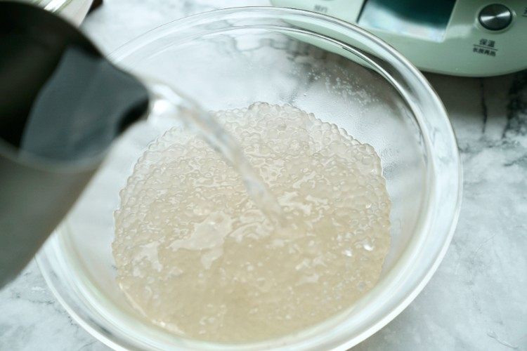 西米煮完一定要过冰水两次,这样西米的口感会非常Q弹。
