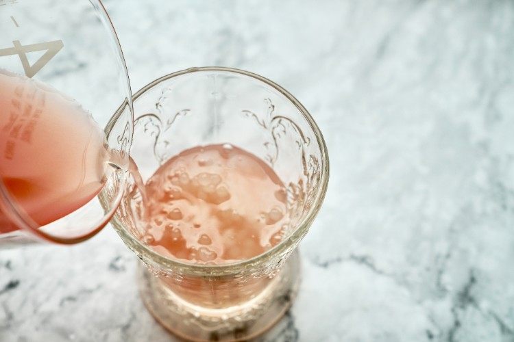 把去除水份的西米装入器皿,倒入西瓜汁。