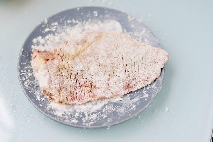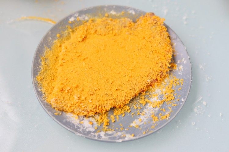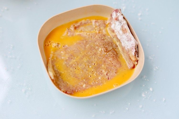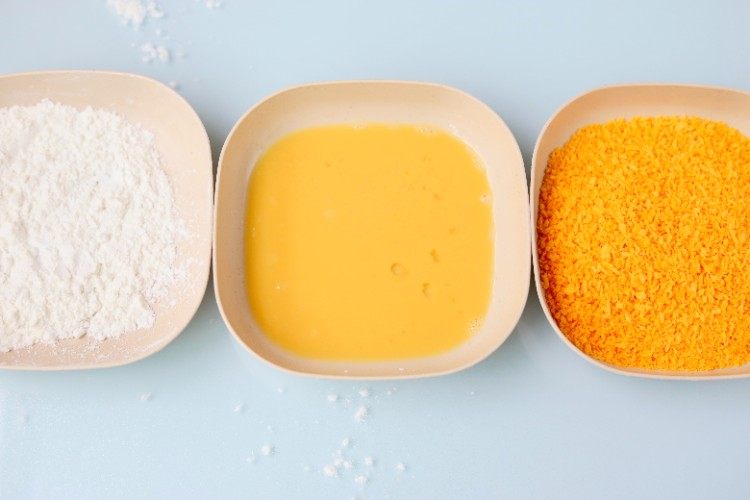 准备炸物三件套:面粉、鸡蛋和面包糠。
