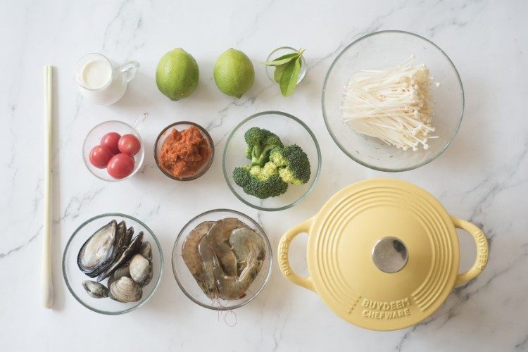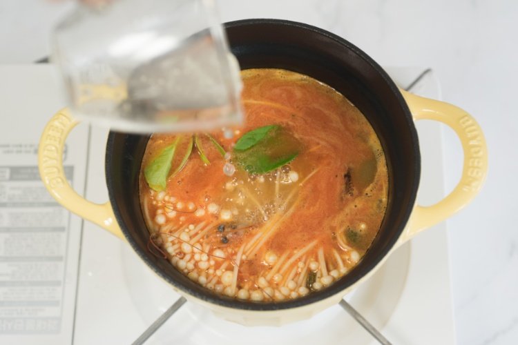 加入淡奶油和椰浆,中火煮至花蛤开口