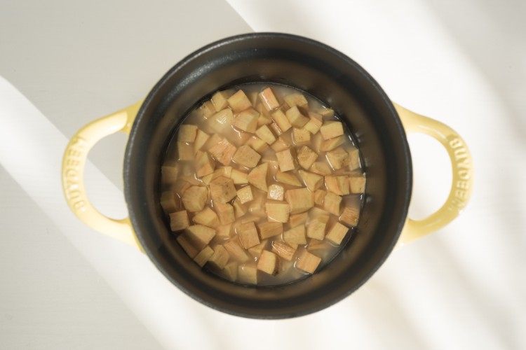 盖上锅盖,将锅放在煤气灶上,中火煮开