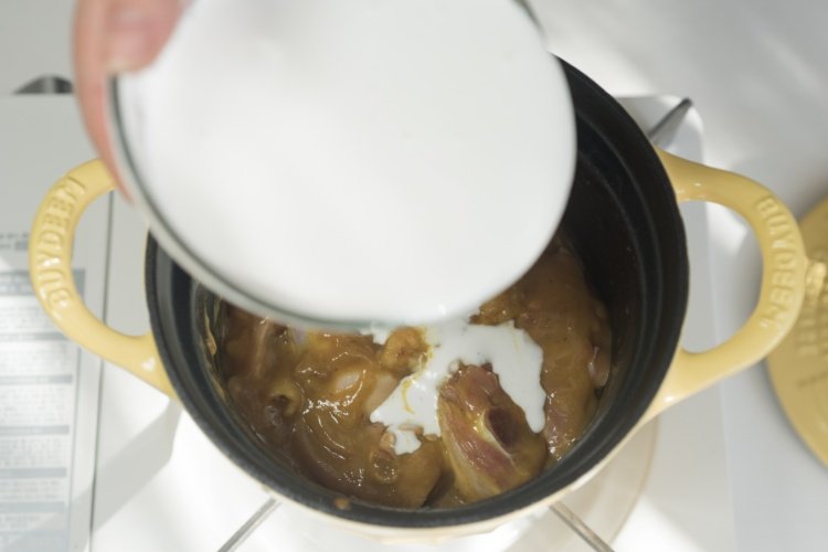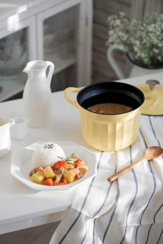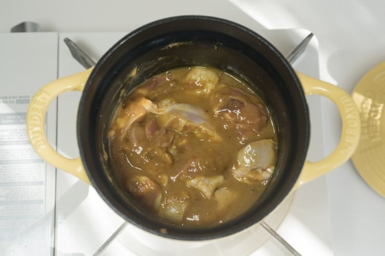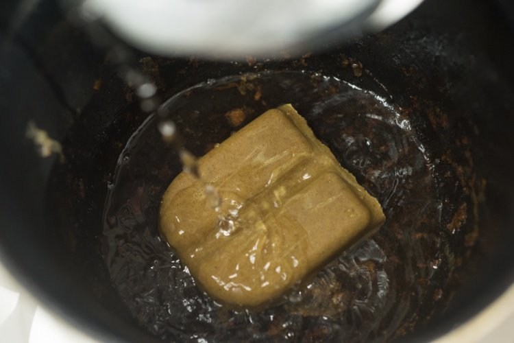 锅中放入咖喱块,加入1小杯水,中火炒至咖喱块融化