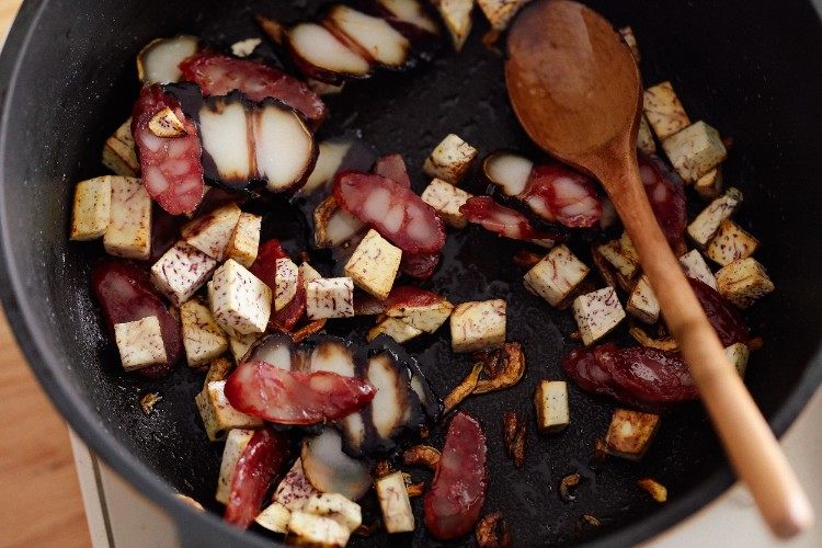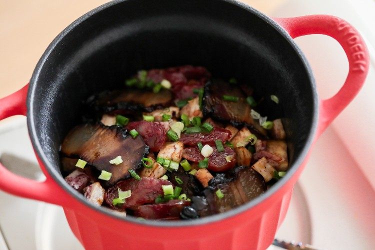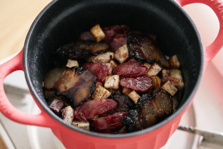 芋头腊味饭有点古早味的感觉,芋头粉粉糯糯,米饭香喷喷亮晶晶,腊肠和腊肉的油脂使得米饭“腊味十足”,一开盖鲜香扑鼻而来,赶紧开动啊。