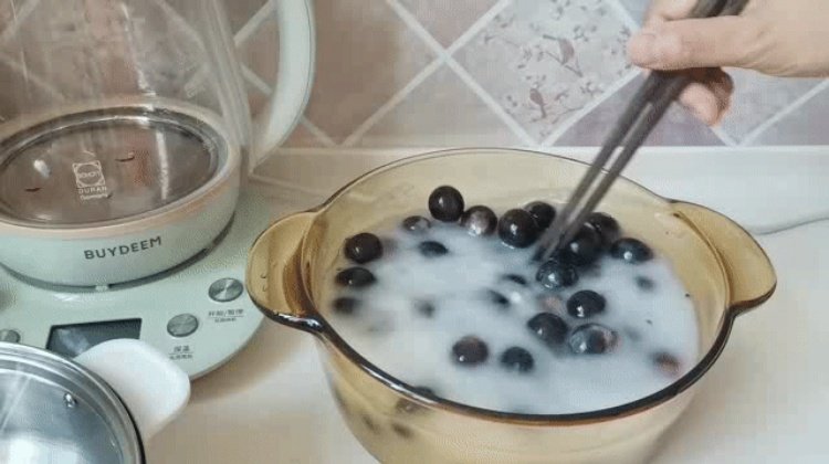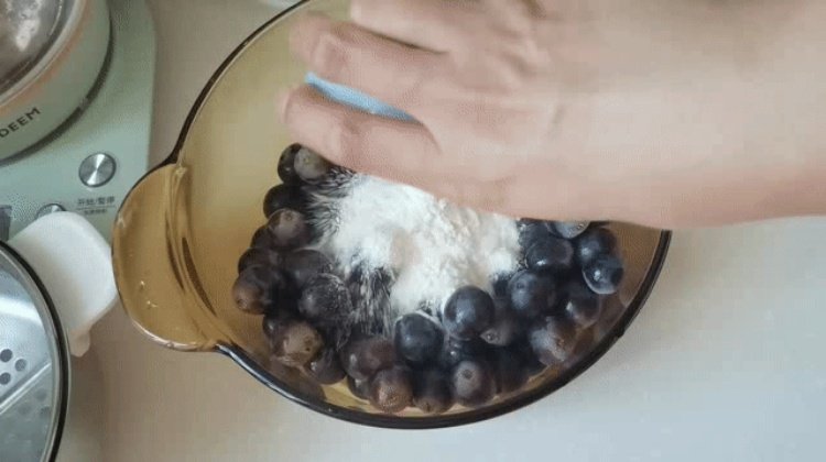 加入面粉,面粉能吸净葡萄表面的灰尘