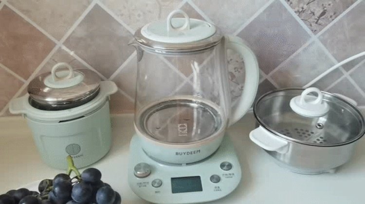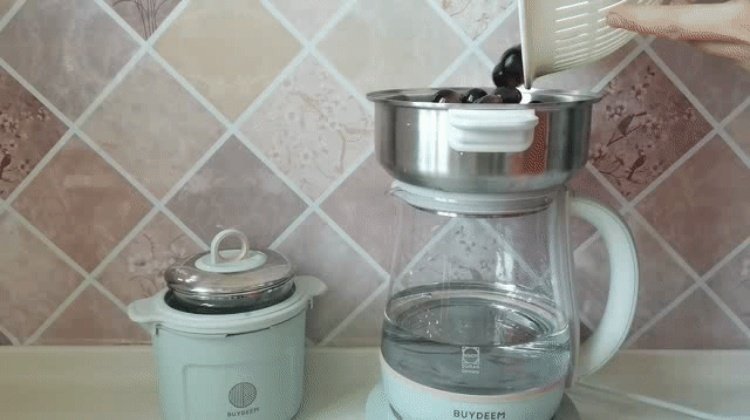 北鼎养生壶加入700ml纯净水,放入小蒸笼,加入葡萄,盖上盖子