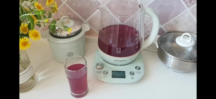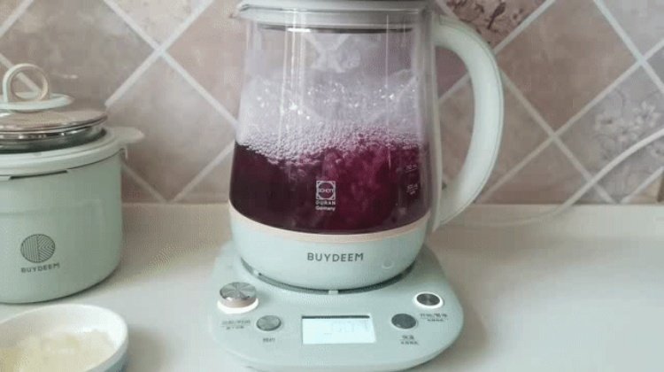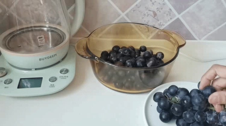 葡萄受热后,汁水就会滴到壶里,汤汁已经变的很好看了