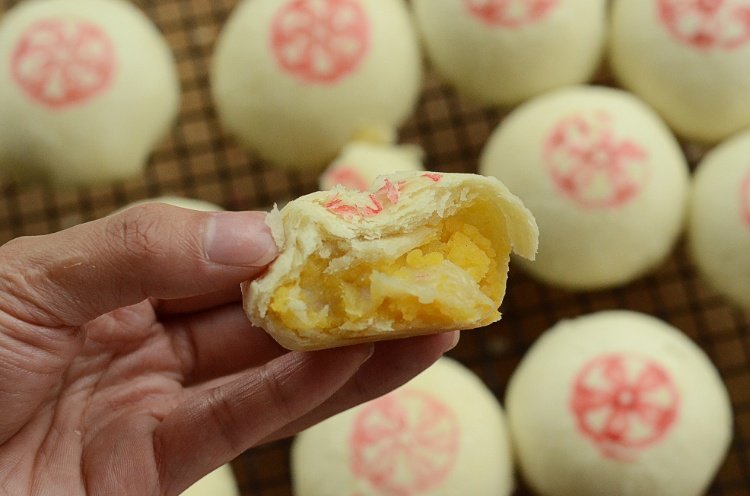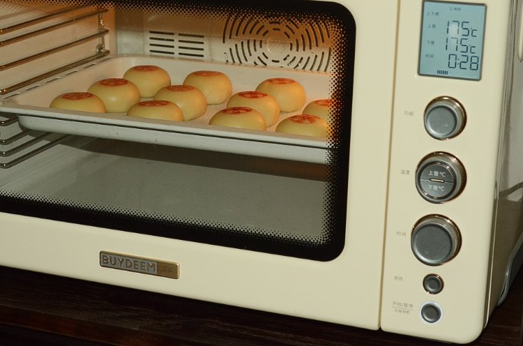 烤箱预热175℃,烘烤约30-35分钟,尽量让它表面别上色了。其实也不容易上色的。因为馅儿其实都是熟的,我们烘烤的是表皮部分。