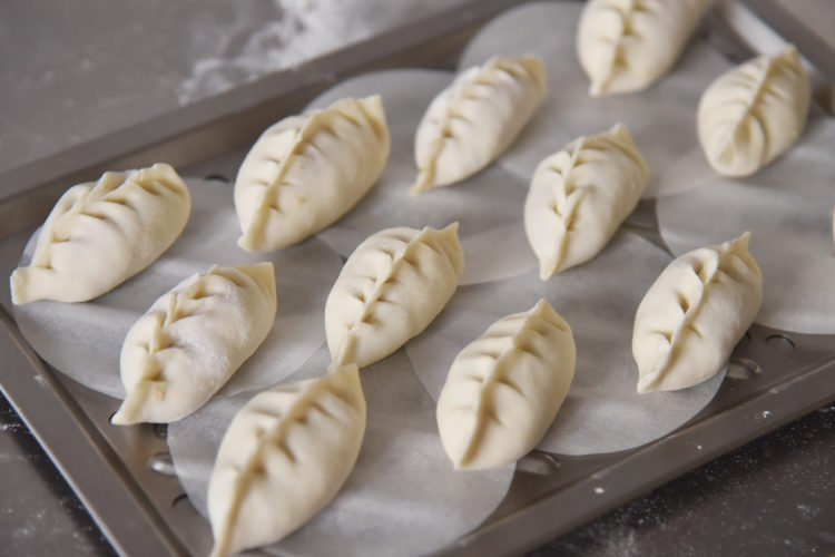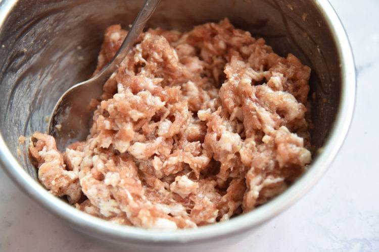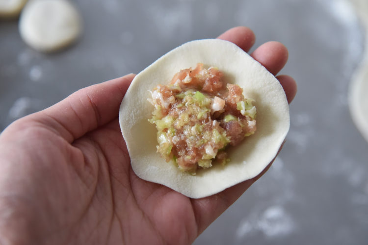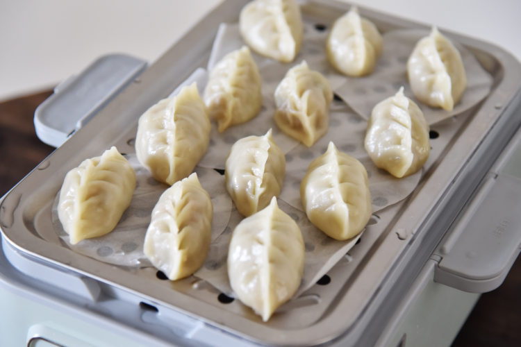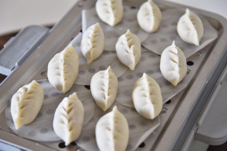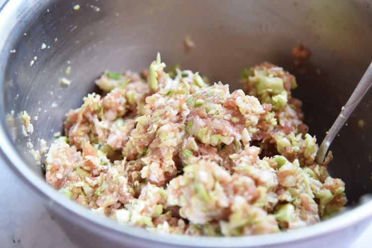 蒸饺想要做的好吃,调馅是关键!水份多的食材要先依特性做脱水处理,馅料才不会水济济的;肉泥类的馅料先加少许盐,搅拌至出胶,再分次加入少许水,馅料才会爽滑多汁。