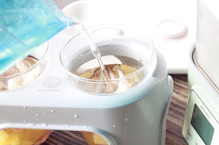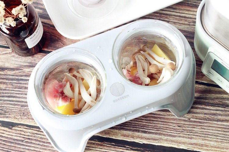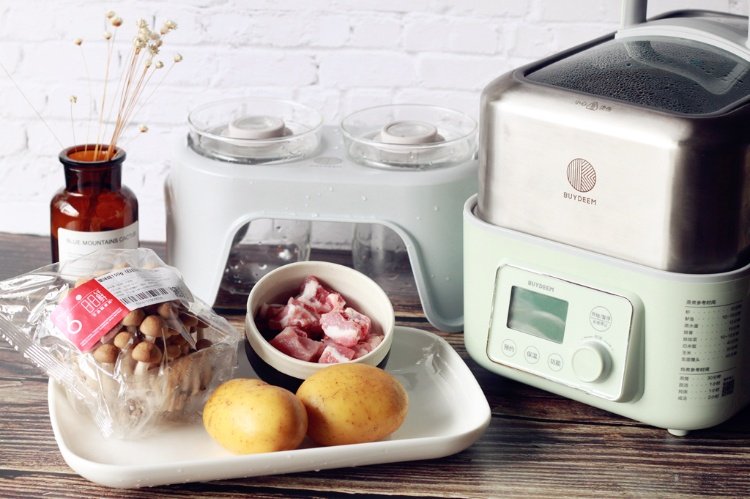 准备好食材,排骨先冷水下锅,氽去血沫;土豆去皮切块;海鲜菇洗净备用;