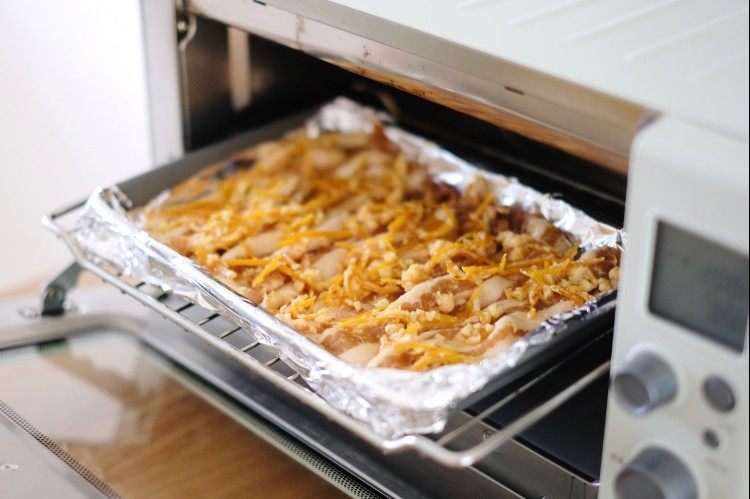 4.烤箱选择烤肉功能,放入上层,200度12~15分钟即可(看肉片厚度调整烘烤时间)。