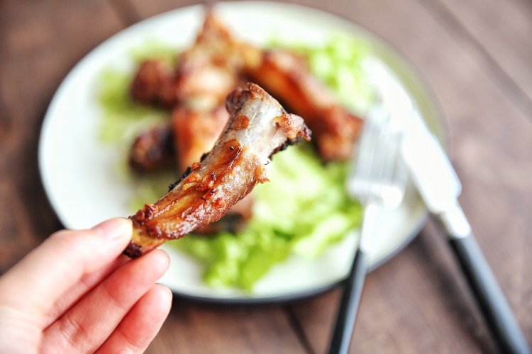 蜜制蒜香烤排骨完成啦,什么都不用撒,直接开吃;