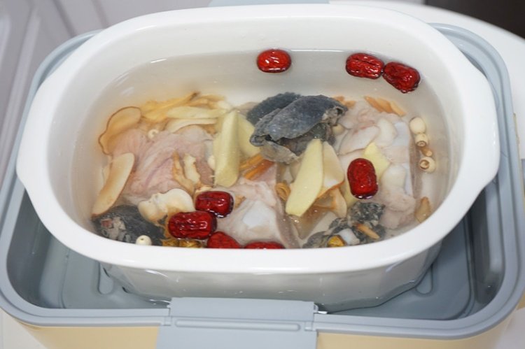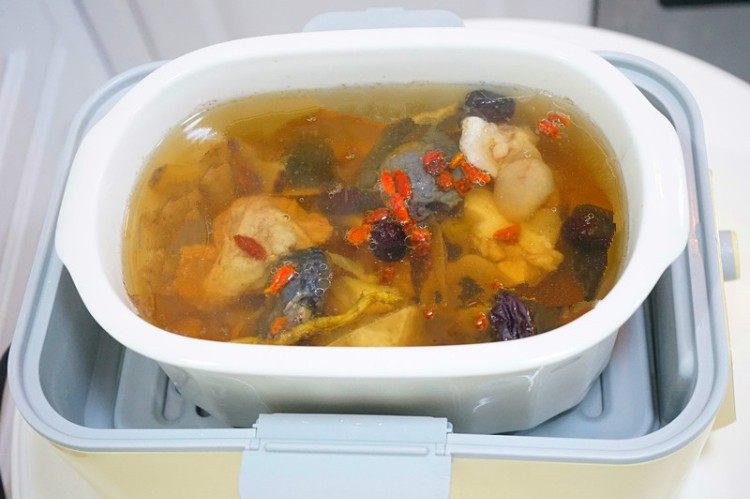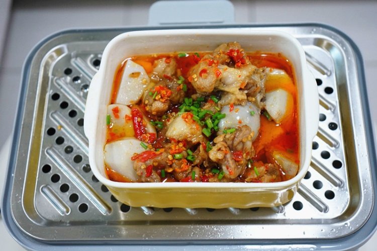 汤剩余30分钟的时候按速蒸键,如果排骨太大块或者比较多的话时间适当延长
