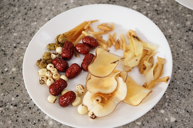 这里有石斛,麦冬,蒲公英,玉竹,海底椰,莲子,红枣,所有材料都要清洗一遍